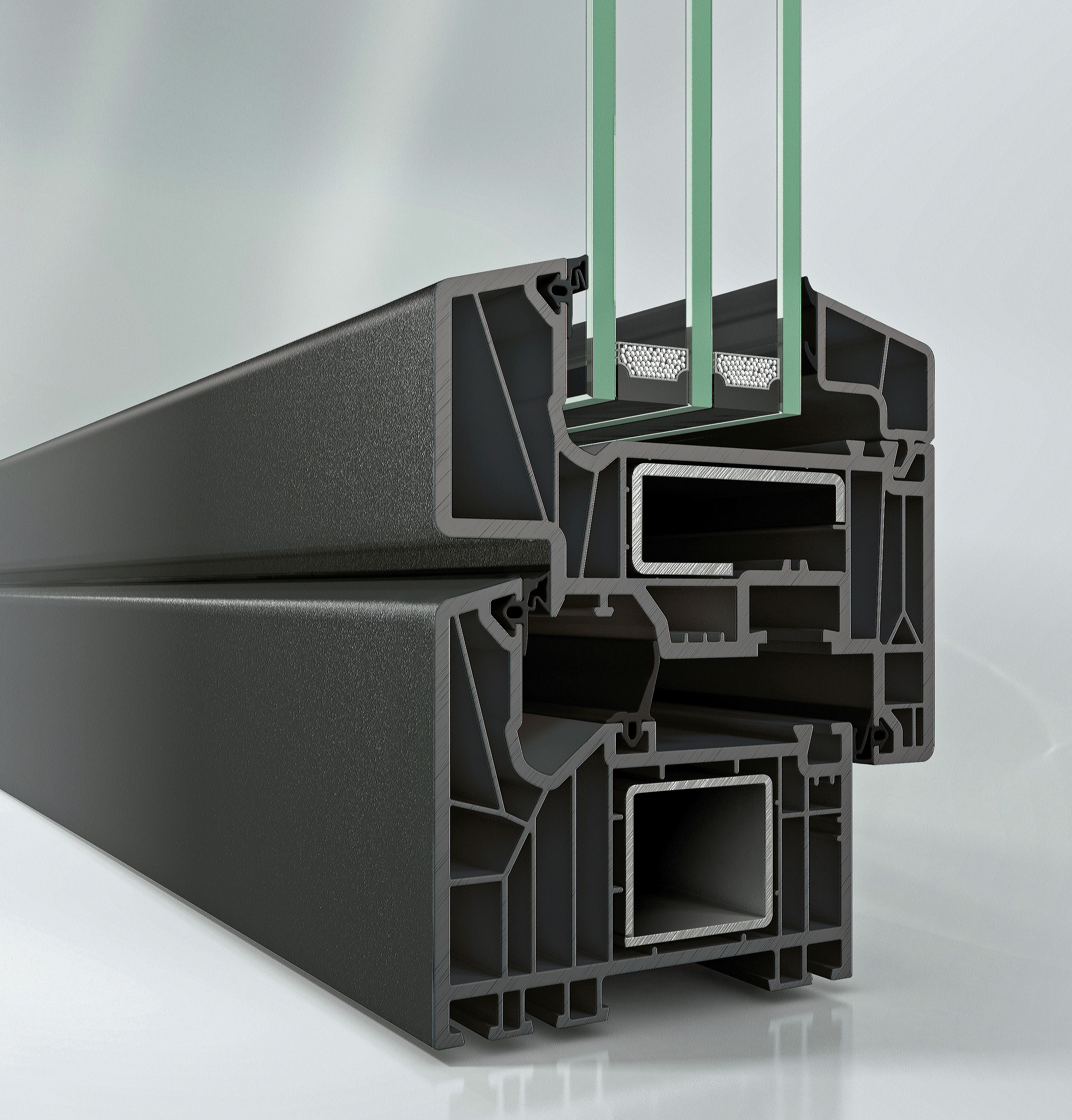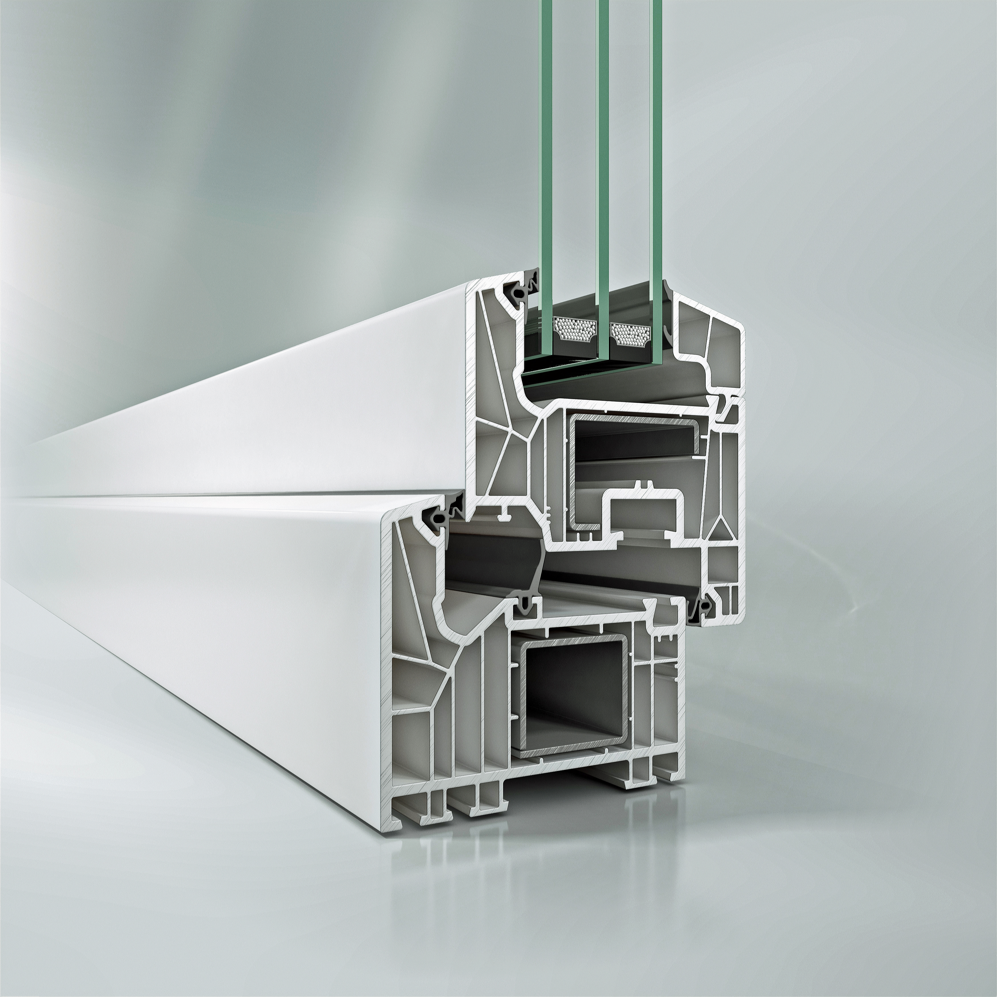 Het kunststof systeem Schüco Living is een innovatief 7-kamersysteem dat dankzij de toegepaste Twin-systeemtechnologie zowel met aanslagdichting als met middendichting standaard is uitgevoerd. In combinatie met middendichting behaalt het systeem Passivhaus-niveau conform fit Rosenheim, maar ook met aanslagdichting staat het systeem garant voor onovertroffen thermische isolatie en smalle aanzichtbreedtes.